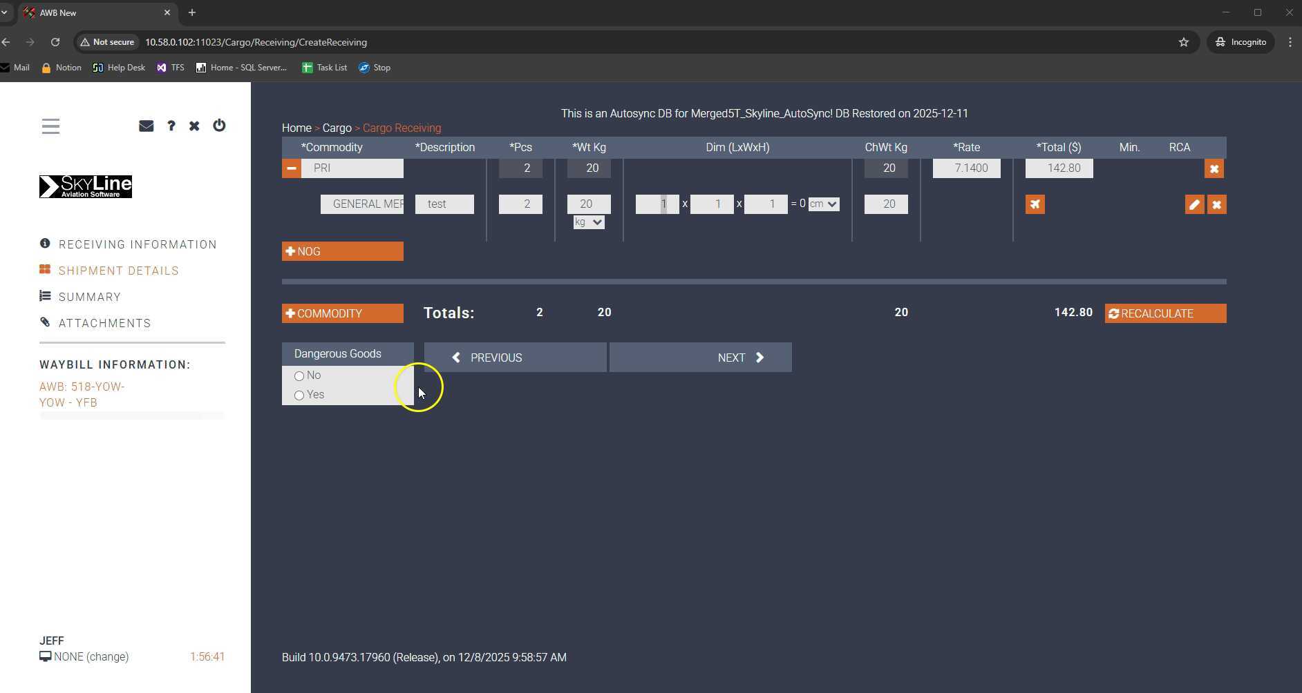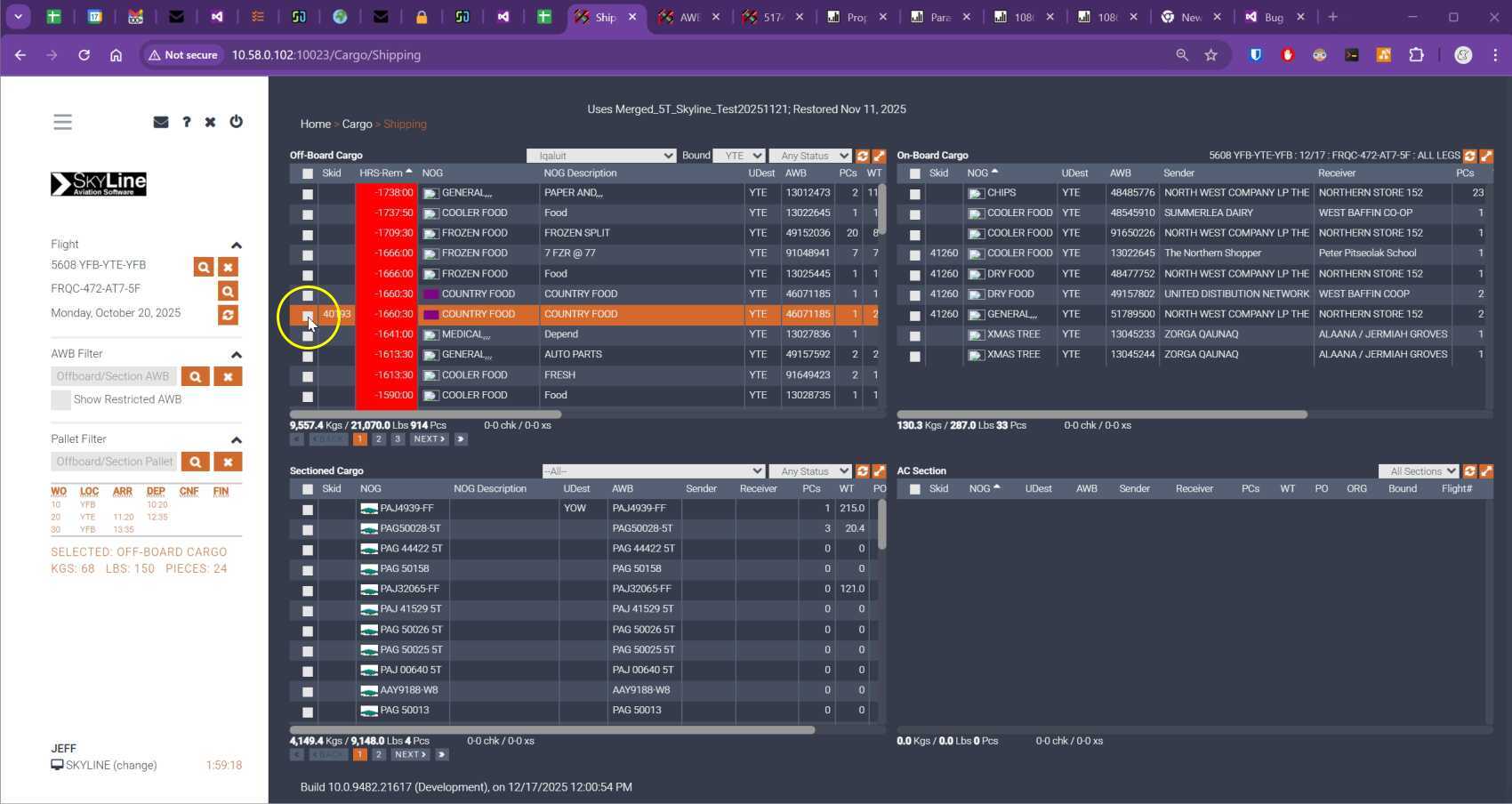 cargo calculate on weight change